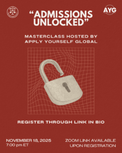 Join Apply Yourself Global’s free info session on November 18th, at 7pm to learn exactly how to stand out in your grad school applications. Get insider tips, proven strategies, and expert advice to get accepted in your dream program🌟